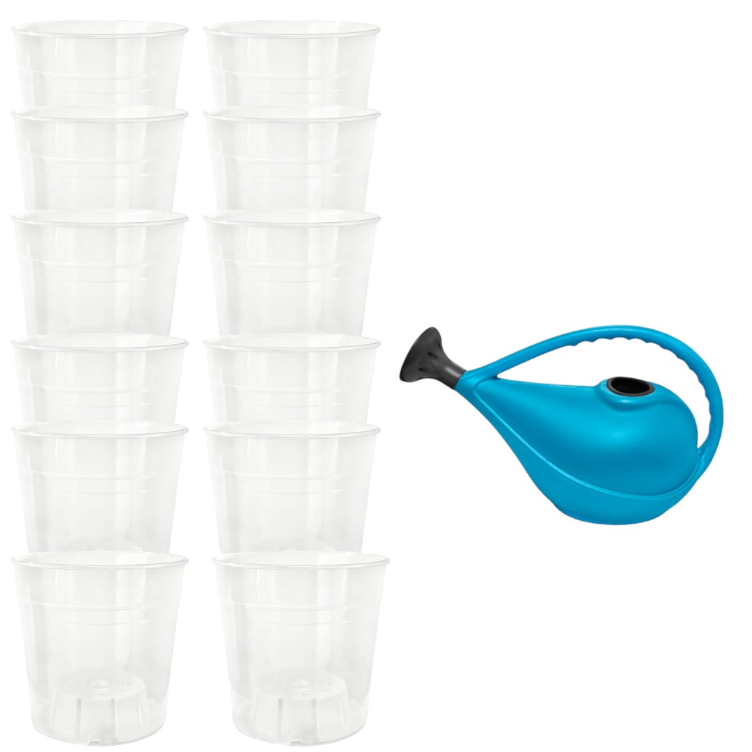 Kit Potes Nutriplan Nº 12 Transparente (12 unidades) + Regador Plástico Azul com Bico 3 Litros