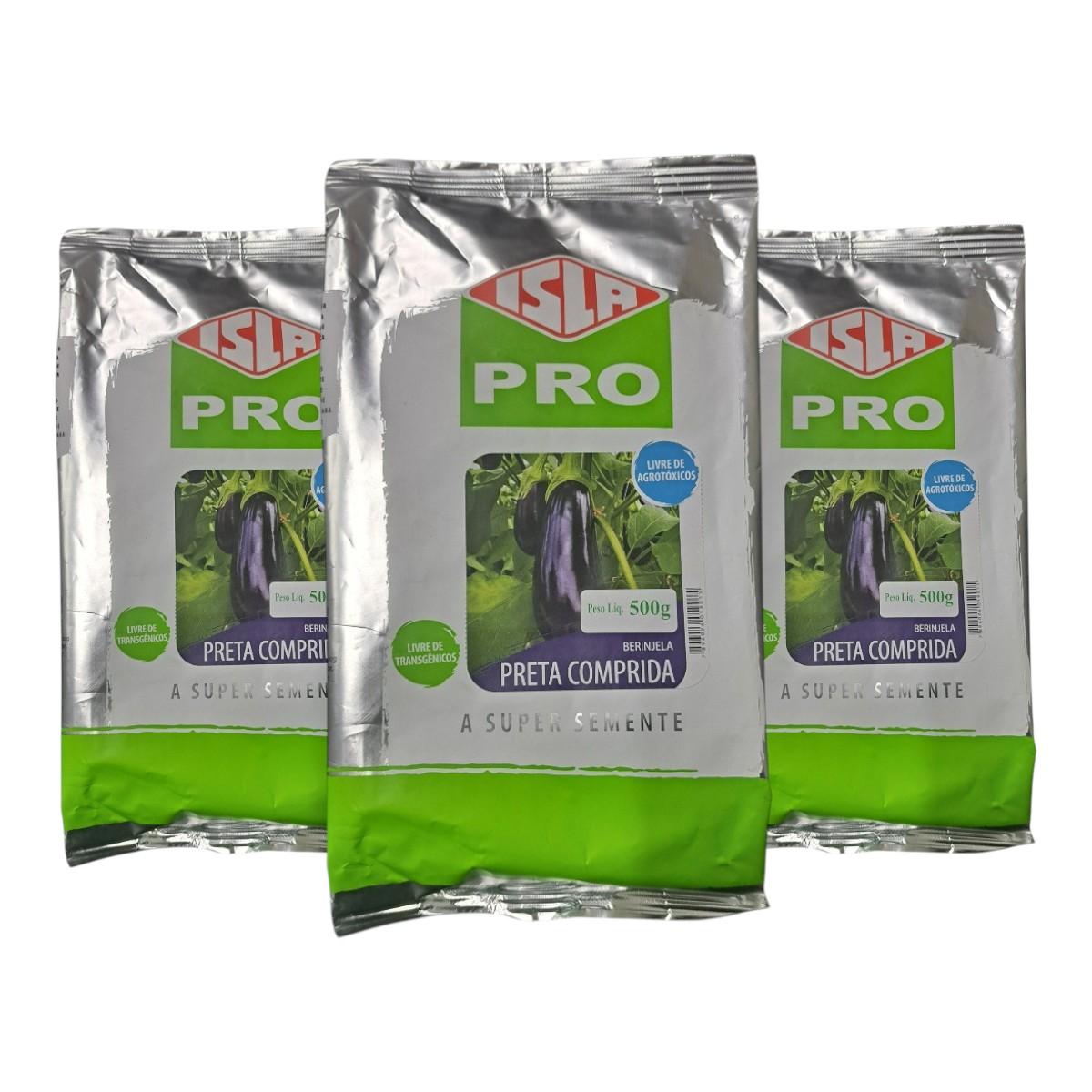 * Serão enviadas 3 unidades - Sementes de Berinjela Preta Comprida Embu Isla 500g – Ideal para hortas domésticas e comerciais.