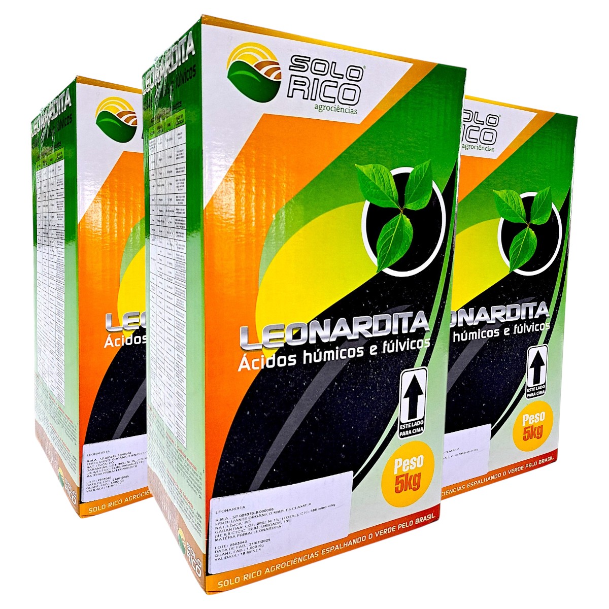*Serão enviadas 3 unidades - Adubo Solúvel Leonardita Australiana + Algas Marinhas Solo Rico – Caixa 5 kg