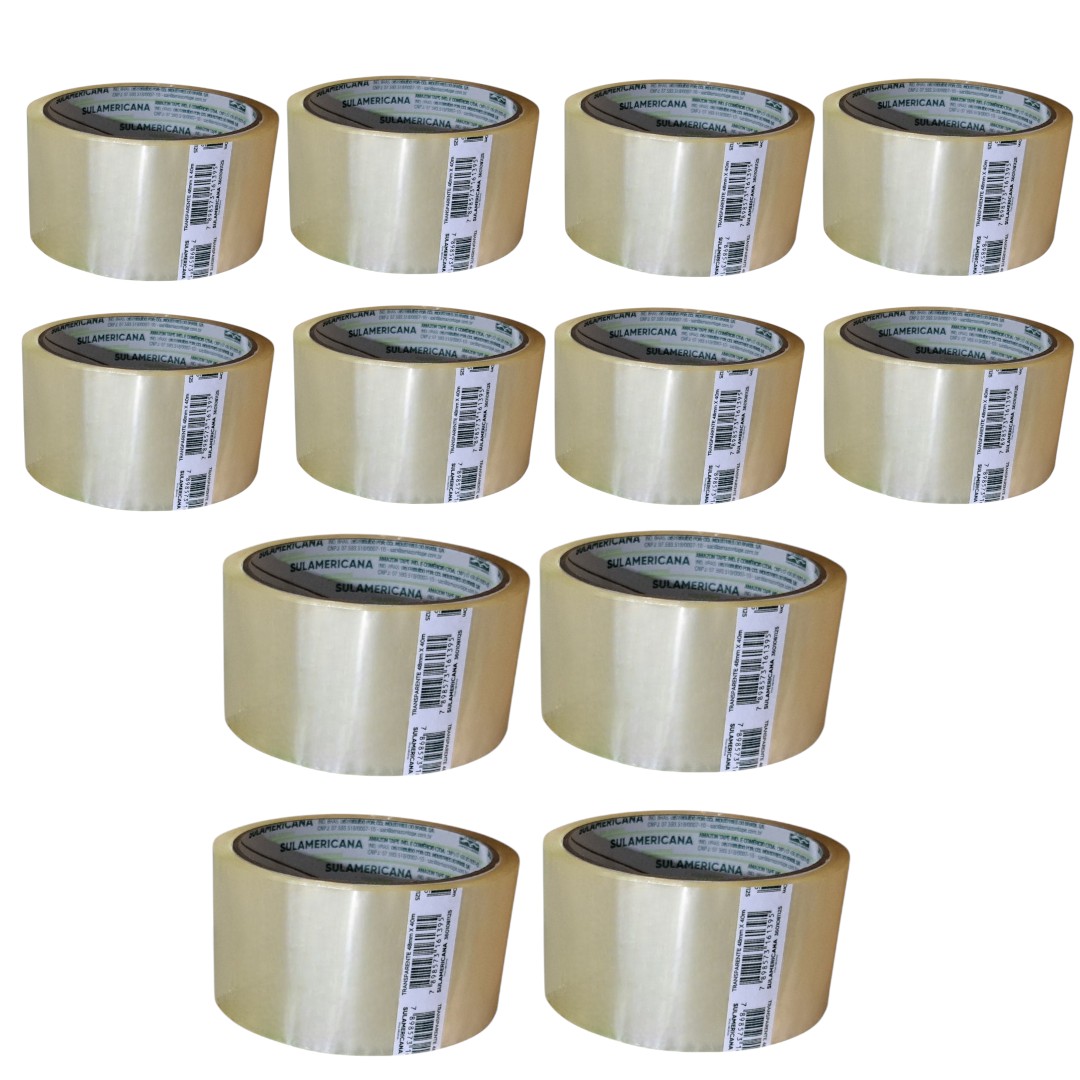 Pacote com 4 rolos de fita adesiva transparente, com 48 mm de largura e 40 m de comprimento cada, oferecendo excelente resistência e aderência, ideal para diversas aplicações gerais ou específicas.