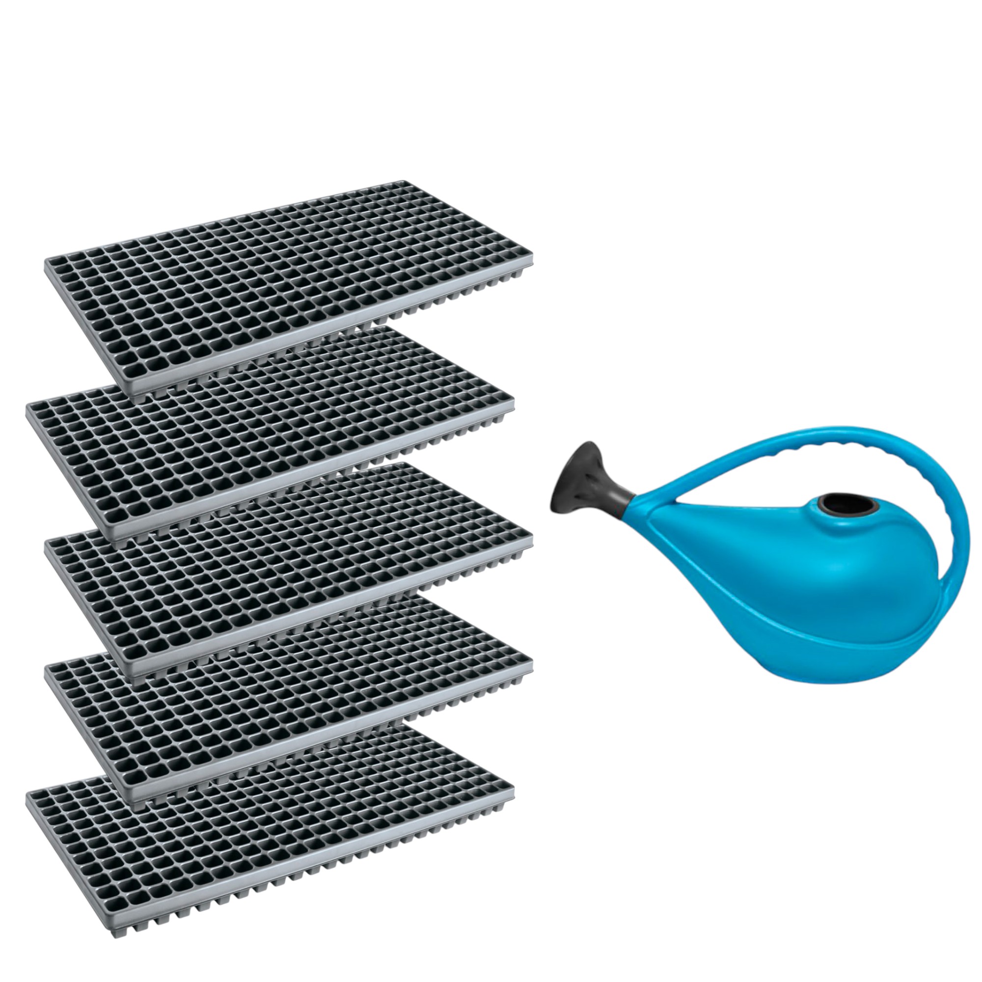 Kit com 5 Bandejas Maleáveis 288 Células 10 mL + 1 Regador Azul 3 L Nutriplan