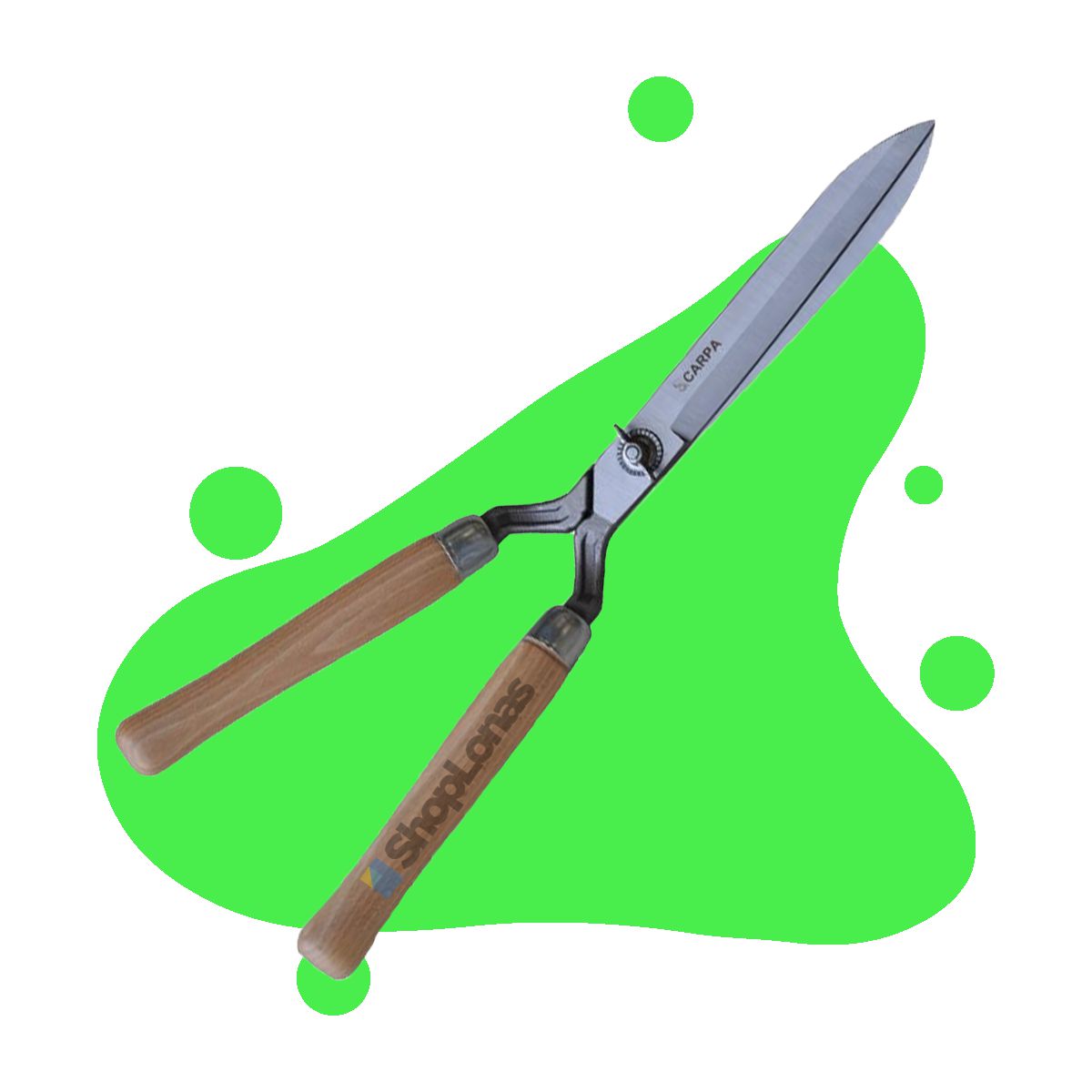 Tesoura de Jardim da marca Carpa modelo 25 cm. Indicada para o corte de grama, poda, cerca viva, canteiros, entre outros. Tesoura com cabo de madeira com excelente acabamento e material durável.