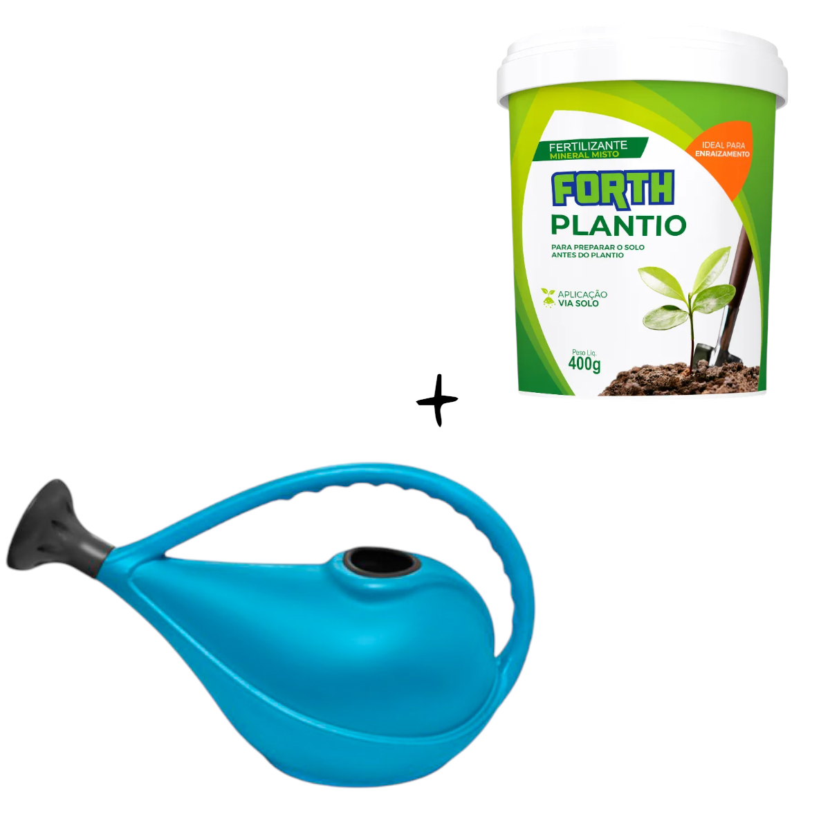 Kit Regador Nutriplan 3 Litros Azul Com Bico + Fertilizante Forth Plantio 400g