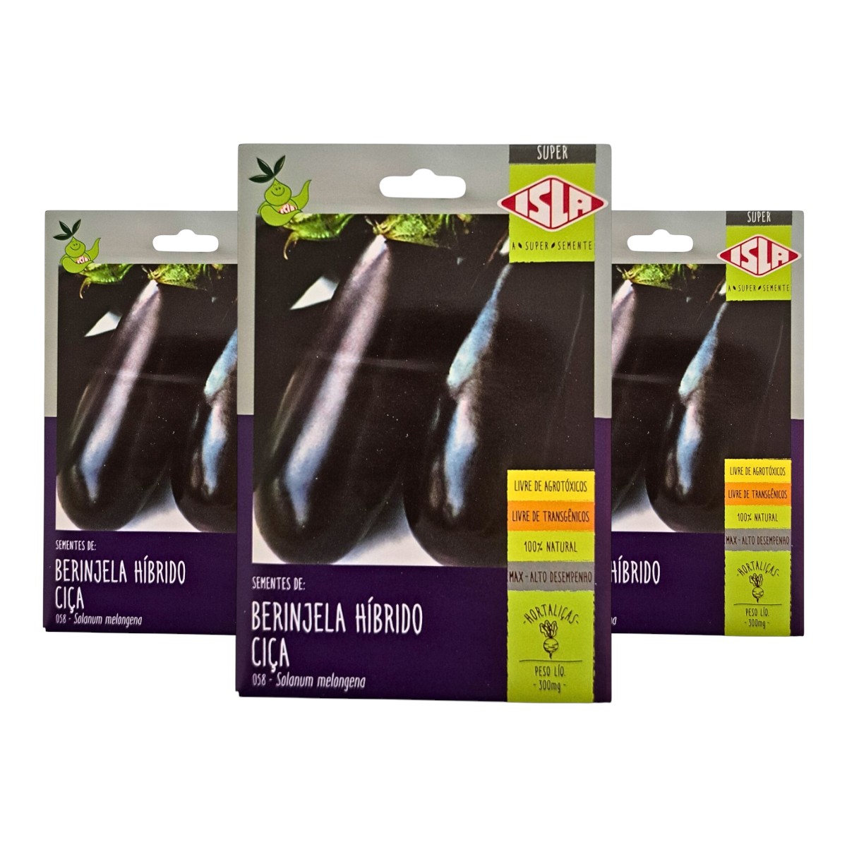 * Serão enviadas 3 Unidades - Berinjela Híbrida Ciça Isla 300mg | Sementes Premium