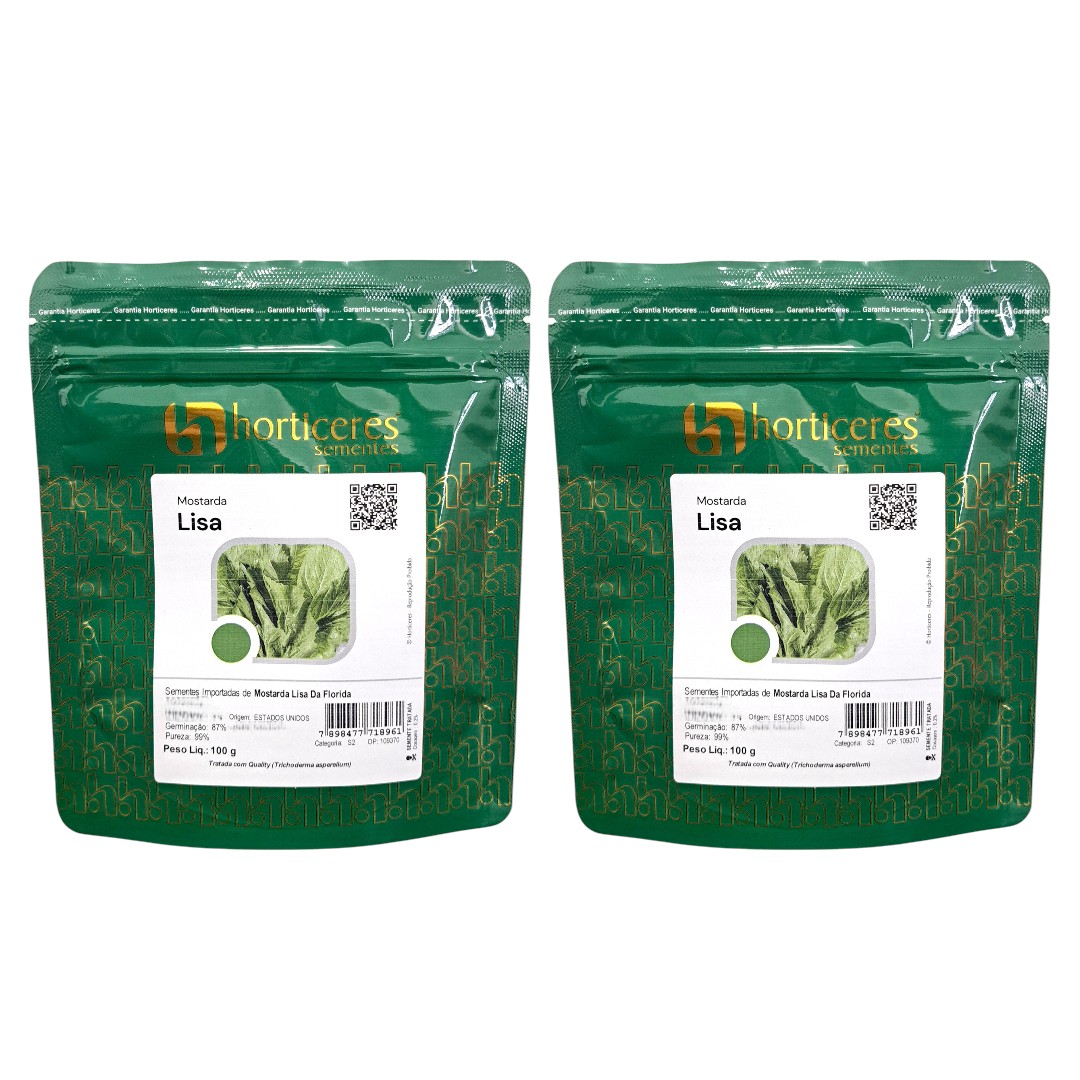 *** Serão enviadas 2 Unidades - Mostarda Lisa da Flórida 100g Horticeres – Folhas Lisas, Crescimento Rápido
