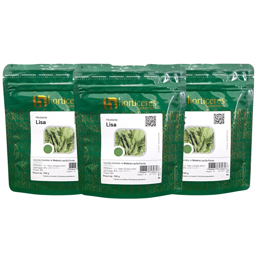 *** Serão enviadas 3 Unidades - Mostarda Lisa da Flórida 100g Horticeres – Folhas Lisas, Crescimento Rápido